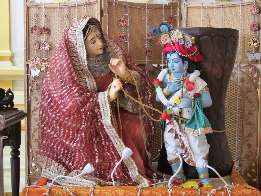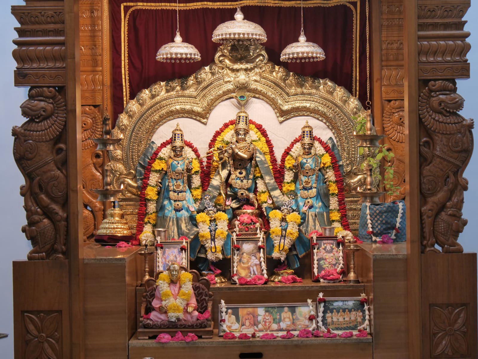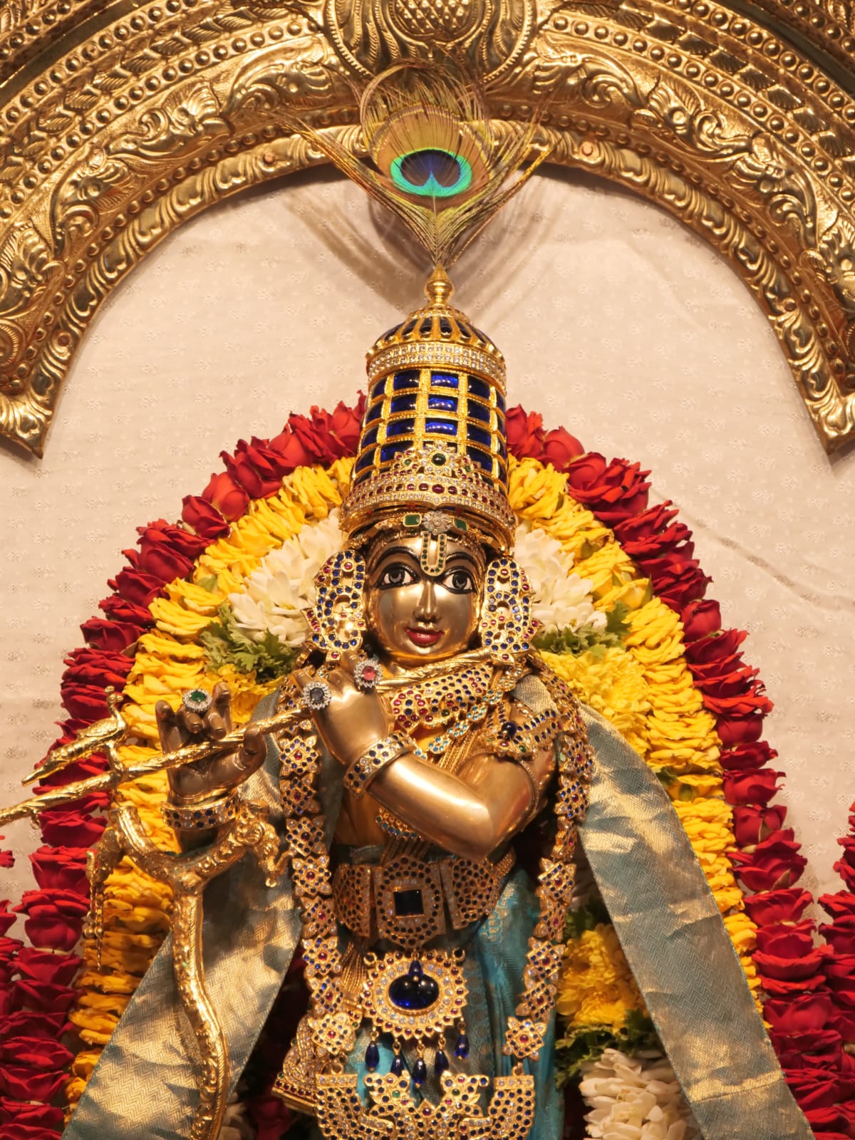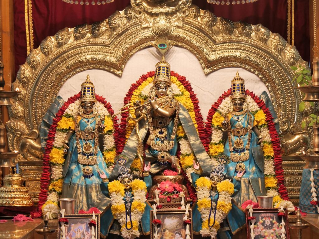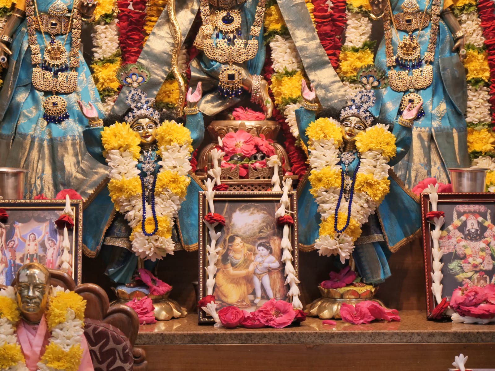 Today’s darshan of Their Lordships Arulmigu Sri Krishna Rukmini Satyabhama, Sri Sri Nitai Gauranga and Srila Prabhupada at Dakshina Dwaraka Dhama, HKM Chennai