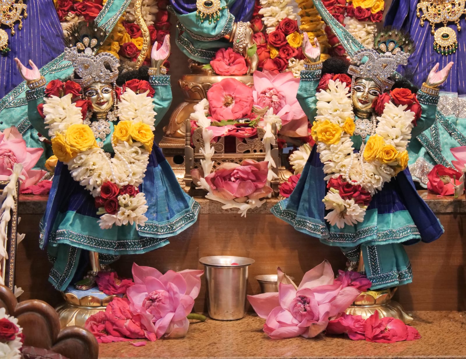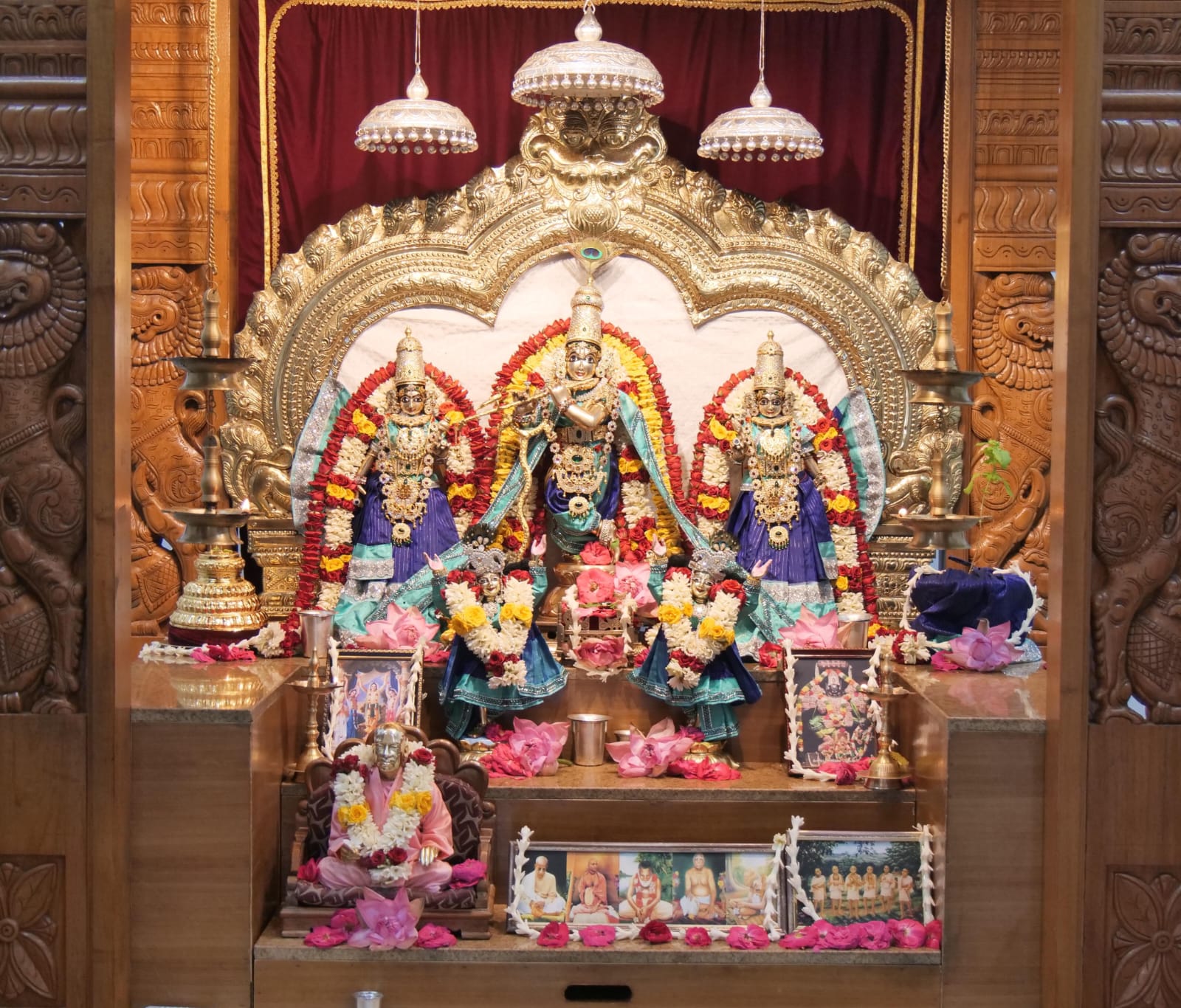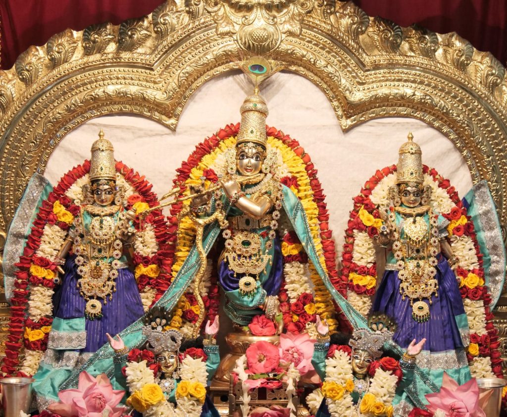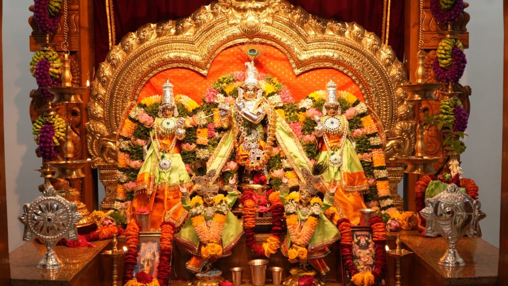 Today’s darshan of Their Lordships Arulmigu Sri Krishna Rukmini Satyabhama, Sri Sri Nitai Gauranga and Srila Prabhupada at Dakshina Dwaraka Dhama, HKM Chennai