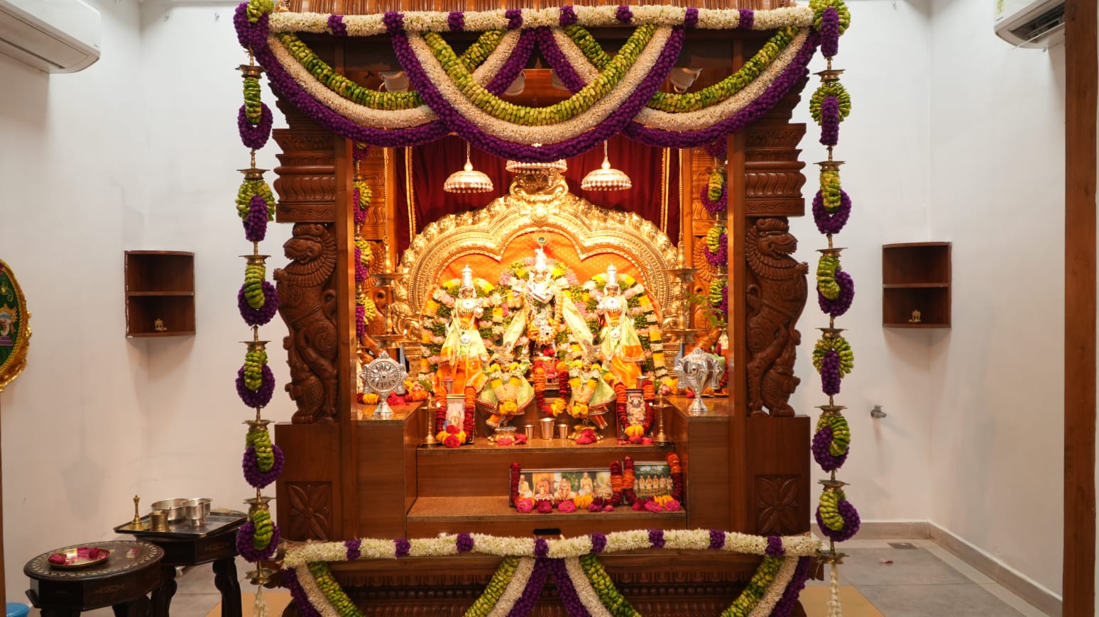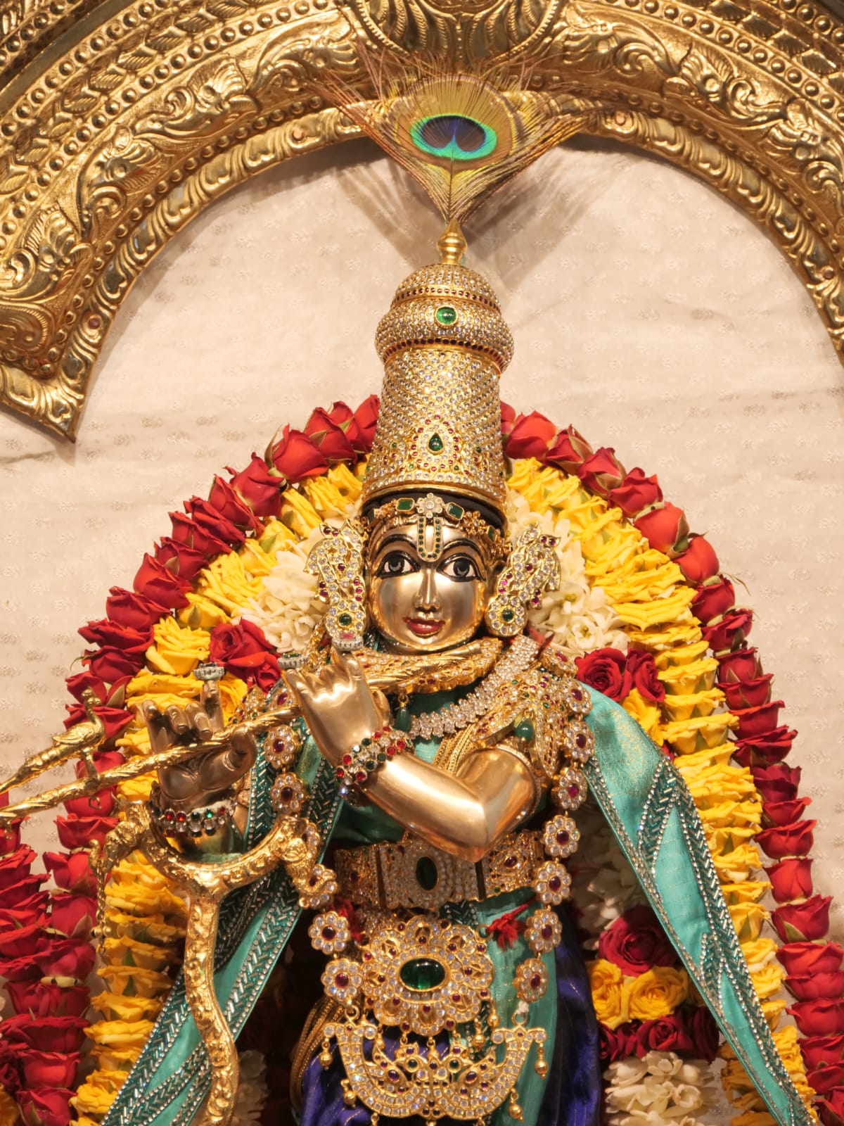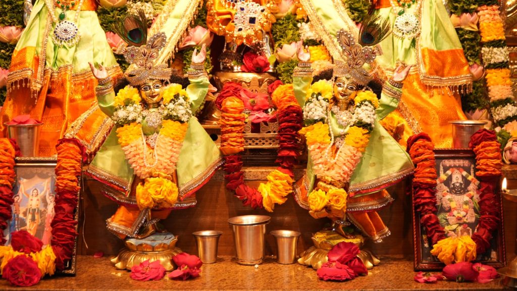 Today’s darshan of Their Lordships Arulmigu Sri Krishna Rukmini Satyabhama, Sri Sri Nitai Gauranga and Srila Prabhupada at Dakshina Dwaraka Dhama, HKM Chennai